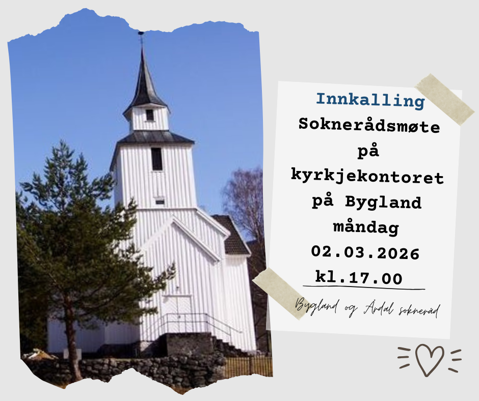 Soknerådsmøte måndag 2. mars kl. 17.00 på kyrkjekontoret på Bygland